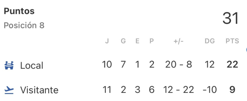 A lo largo de esta temporada, así figura el rendimiento de los acereros de local y de visita: