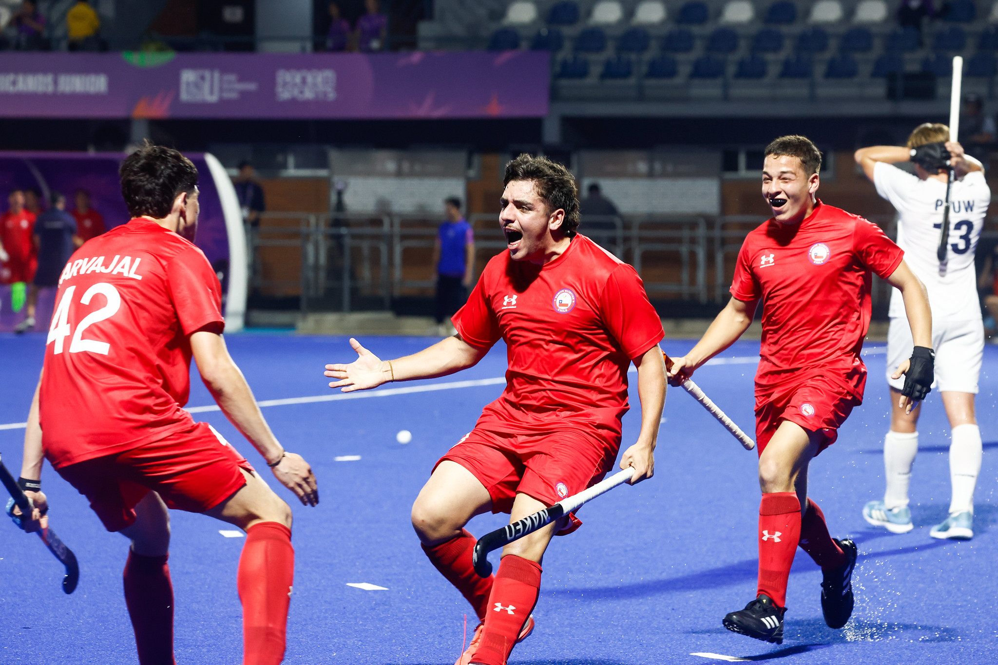 Por una parte, los Diablos Junior derrotaron con autoridad a Estados Unidos por 4-2 con anotaciones de Felipe Duisberg, Tomás Hasson, Javier Vargas y Vicente Wilhelmy. “Muy feliz por el equipo y por la gente que nos estaba viendo. Lo veníamos buscando hace rato, trabajamos todo el año por esto. Es un torneo que había que trabajar desde el principio, ir aprendiendo de cada partido para llegar mejor a la última fase”, señaló Sebastián Loehnert, capitán del conjunto nacional.