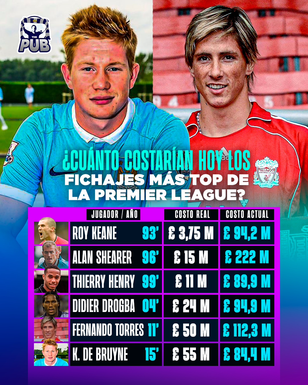 Al avanzar en el tiempo, la última década hubo dos fichajes icónicos en la Premier League. El de Fernando Torres al Liverpool y el de Kevin De Bruyne al Manchester City, dos futbolistas que se transformaron en leyendas en sus respectivos equipos.